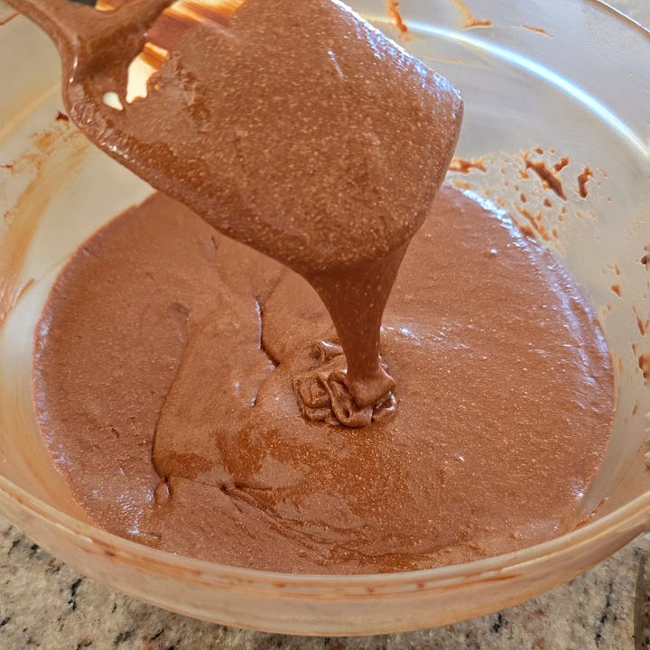Pour the batter into the prepared pan and bake for 25–30 minutes, until a toothpick inserted in the center comes out clean.