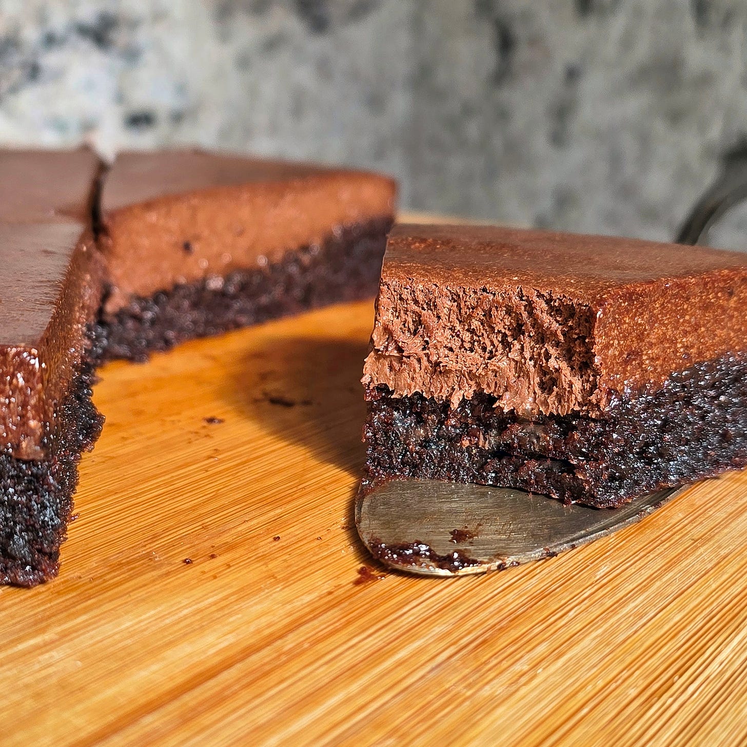 A show-stopping dessert: moist chocolate cake topped with airy chocolate mousse, assembled like a pâtisserie-style entremets.