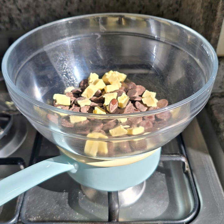 Melt the chocolate in a double boiler or microwave. Let cool slightly.