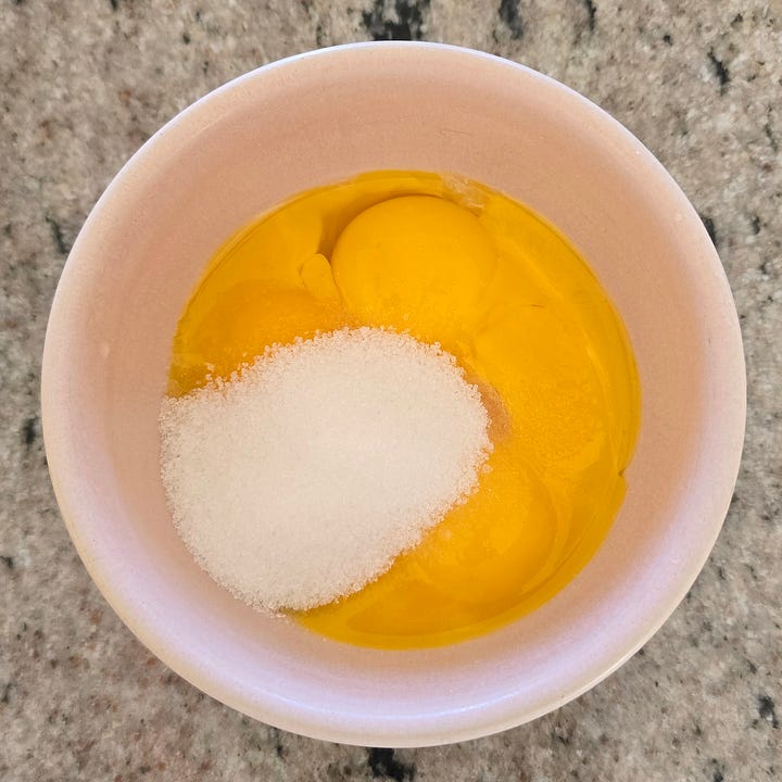 Beat the egg whites with a pinch of salt. Once foamy, add the remaining sugar and beat until stiff peaks form.